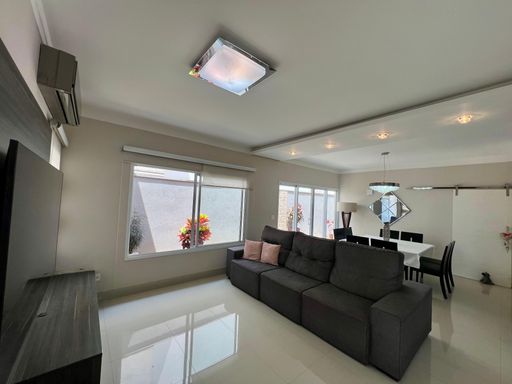 Casa a venda com 3 dormitórios, sendo 2 suite, 1 master com closet, banheira, jardim de inverno, sala tv integrada com sala de jantar, cozinha com ilha, armários planejados, quintal espaçoso, garagem para vários veículos, área gourmet.
