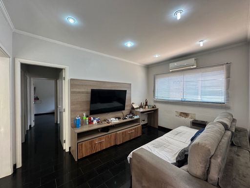 Casa térrea contendo: Sala de TV integrada com sala de jantar e cozinha, W.C social, 02 dormitórios sendo 01 suíte máster com closet, área gourmet com churrasqueira e 03 vagas de garagem coberta. Acabamentos: piso porcelanato, ar-condicionado, moveis planejados.