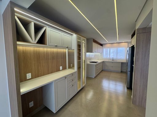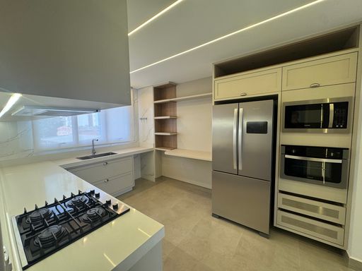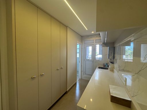 O apartamento ainda conta com um escritório, despensa, lavanderia privativa com móveis planejados e banheiro de empregada, além disso temos uma cozinha completa e riquíssima em planejadas prontas para te receber. Varanda gourmet com a Char broil nunca usada e um fogão de indução para realizar suas culinárias.