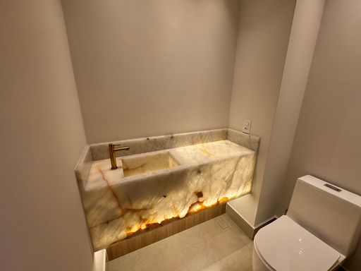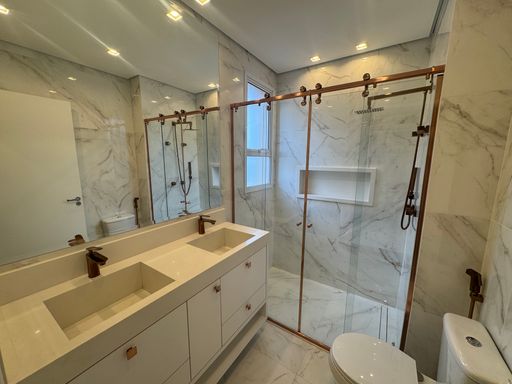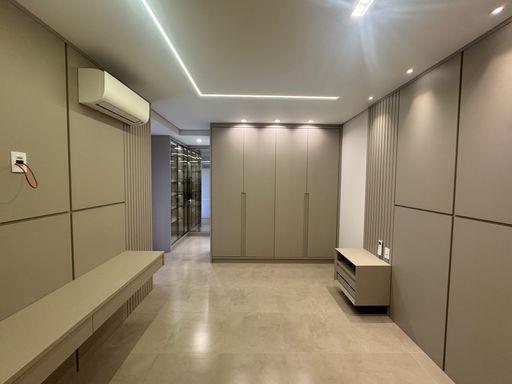 Storia Residencial - Uma mansão suspensa no ar, esse apartamento tem seus detalhes, como: 3 suítes sendo a master com closet e torneiras e puxadores com acabamento (rose e dourado), Lavabo com pedra ONIX. Ao entrar pelo elevador privativo do apartamento, temos uma sala com 2 ambientes integrados sendo a sala de TV & Jantar.