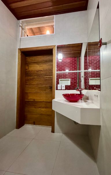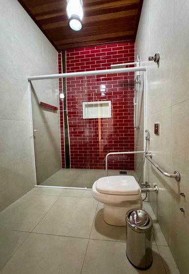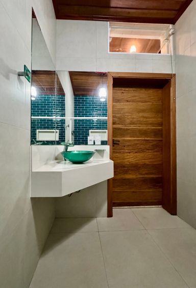 • Salão de convivência com 02 W.C. (masculino e feminino), porcelanato e portas de madeira maciça