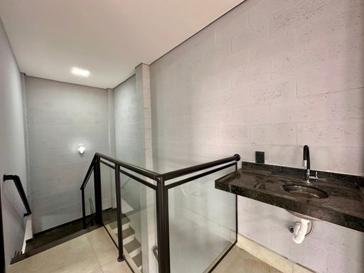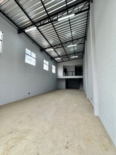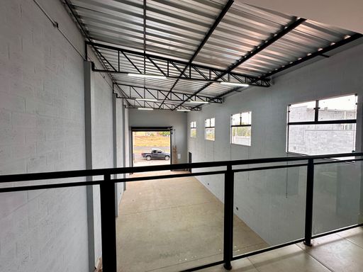 Barracão Comercial com Pé direito de 7,00 metros contendo: Linha de produção, com 02 banheiros sendo F/M, Mezanino com sala de reunião ou diretoria, copa, banheiro e corredor lateral.