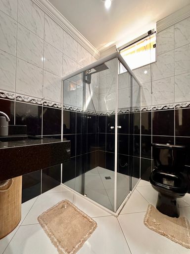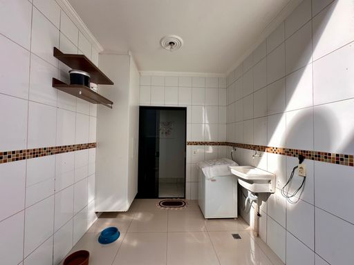 Sala de TV integrado com sala de jantar e cozinha, W.C. social, 03 dormitórios sendo 01 suíte, 01 suítes, lavanderia, área gourmet com churrasqueira, banheiro externo, despensa, garagem para 02 veículos. Acabamentos: porcelanato, piso viniculo.