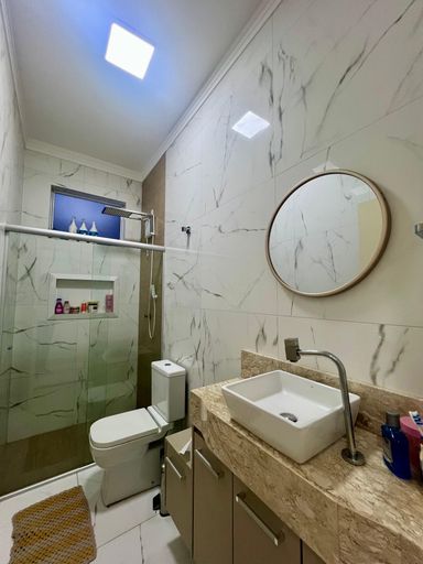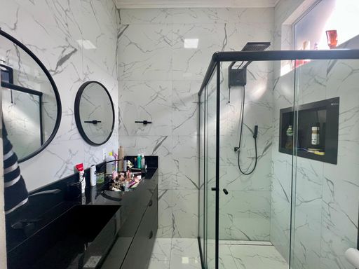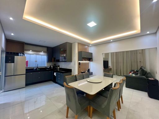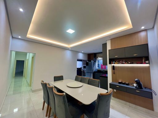 Acabamentos: Piso porcelanato interno e externo, gesso em todos ambientes, ar-condicionado na sala e na suíte, armário planejados na sala de TV, sala de jantar, cozinha, gourmet, 02 W.C. suíte e 01 dormitório.