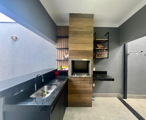 Casa térrea contendo: Sala de TV integrado com sala de jantar e cozinha, 03 dormitórios sendo 01 suíte, W.C. social, área gourmet com churrasqueira, lavanderia, W.C. lavanderia e garagem para 02 veículos coberta.