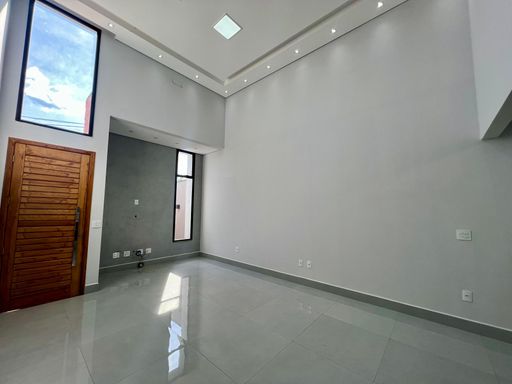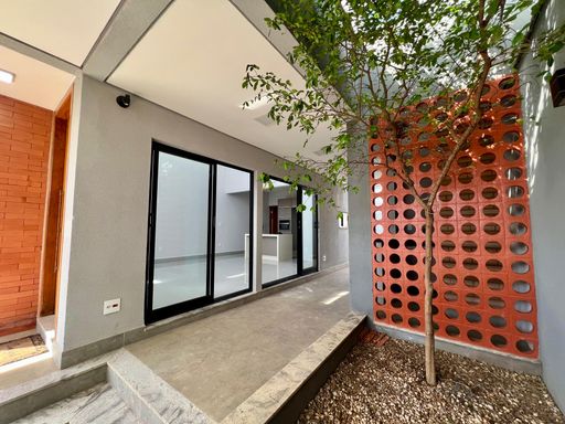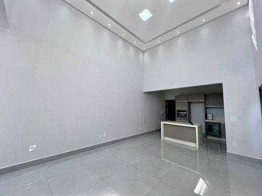 Casa térrea contendo: Sala de TV com pé direito duplo integrado com sala de jantar e cozinha, lavanderia, área gourmet com churrasqueira, W.C. social, 03 dormitórios sendo 01 suíte máster com closet e garagem coberta para 02 veículos.