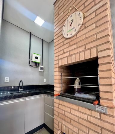 Acabamentos: Piso porcelanato parte interna e externa, energia fotovoltaica, aquecedor solar, infraestrutura pronta para ar-condicionado em todos ambientes, fogão cooktop, forno elétrico e maquina de lavar louça.