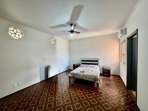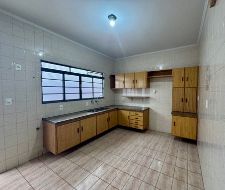 Casa Térrea contendo: 03 dormitórios, sendo 01 suíte com armário, ar-condicionado e ventilador, sala de jantar, sala de TV, Banheiro social com box, cozinha com armário, lavanderia, quarto de despejo, banheiro, terraço e garagem para 02 carros cobertos, espaço gourmet com churrasqueira, fogão cooktop, coifa e armário.