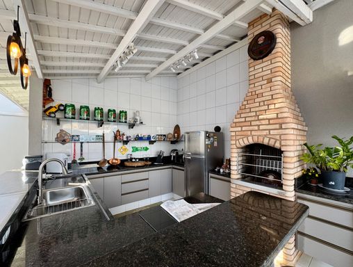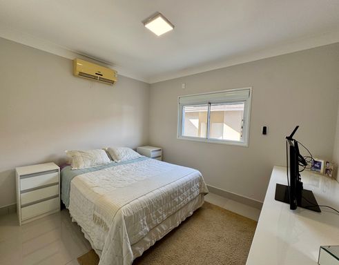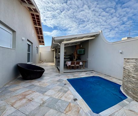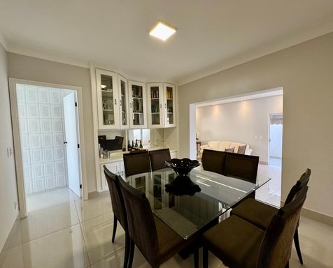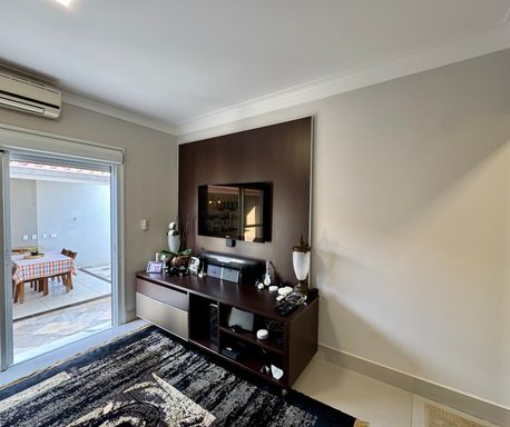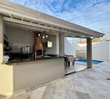 Casa Térrea contendo: 03 dormitórios, sendo 02 suíte, 01 suíte máster com closet sala de estar, sala de jantar, sala de TV, cozinha com sala de almoço, 02 lavanderia, despejo, garagem para 03 carros, espaço gourmet com churrasqueira, W.C., Piscina, armários, ar-condicionado em todos ambientes, Aquecedor solar e energia fotovoltaica. Ambiente externo piso pedra serrada, ambiente interno piso porcelanato. Documentação OK.