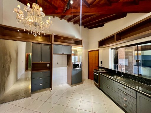 Cozinha e cozinha gourmet com armários, dormitório com ar-condicionado, sala de TV com painel. Ambiente externo piso em porcelanato, ambiente interno piso cerâmico e porcelanato. Documentação OK.