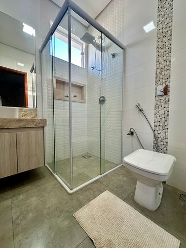 Casa Térrea contendo: 03 dormitórios sendo 01 suíte, sala de TV e sala de jantar integradas, cozinha planejada, lavanderia coberta, garagem para 02 carros cobertos, espaço gourmet com banheiro, churrasqueira, ar condicionado quartos e sala, iluminação toda em led, ambiente externo e interno piso em porcelanato, aceita permuta, documentação em ordem, aceita financiamento.