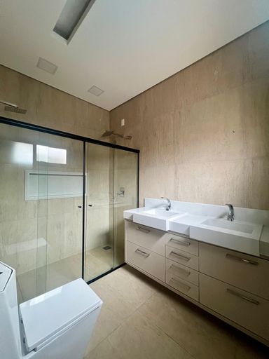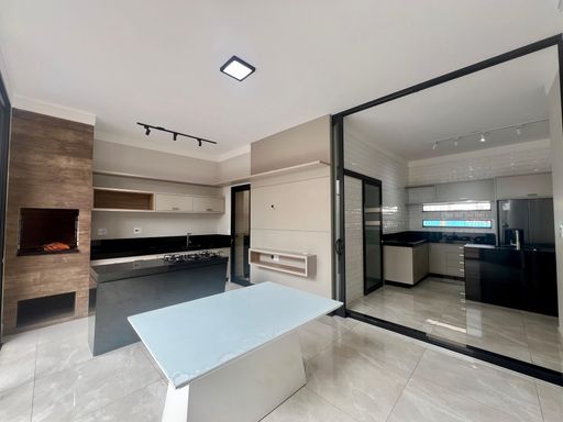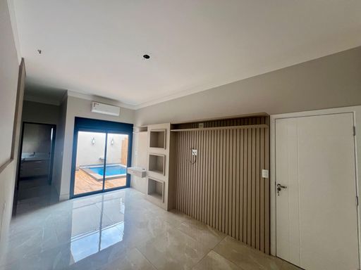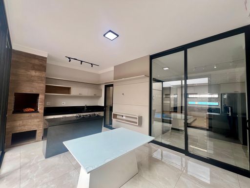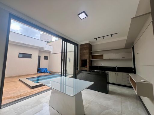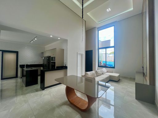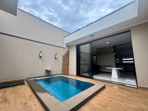 Casa térrea contendo: Sala de TV integrado com sala de jantar e cozinha, lavabo, lavanderia, área gourmet com piscina, W.C. piscina, 03 suítes sendo 01 máster com closet e 02 vagas de garagem.