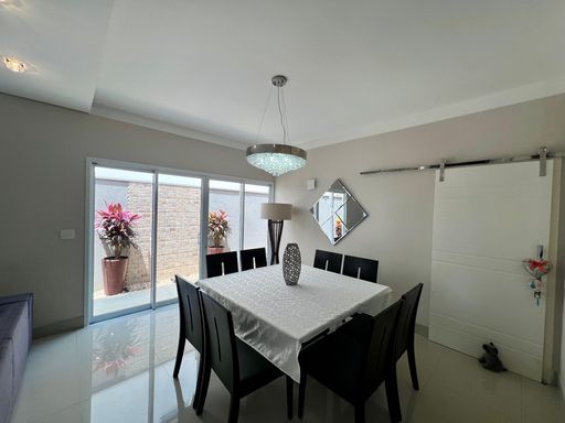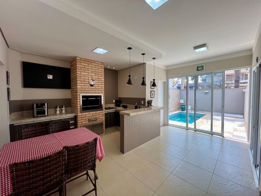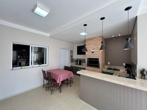 Casa térrea contendo : Sala de TV integrado com sala de jantar e cozinha, lavanderia, área gourmet com churrasqueira e piscina, W.C. piscina, corredor lateral, home office, W.C social, 03 dormitórios sendo 01 suíte máster com closet e garagem para 02 veículos.