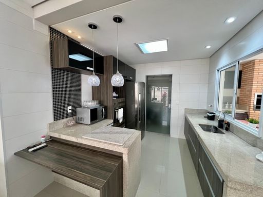 Acabamentos: piso porcelanato e vinilico, esquadrias e portas em alumínio, ar-condicionado em todos ambientes, moveis planejados em todos ambientes, aquecedor solar e elétrico.