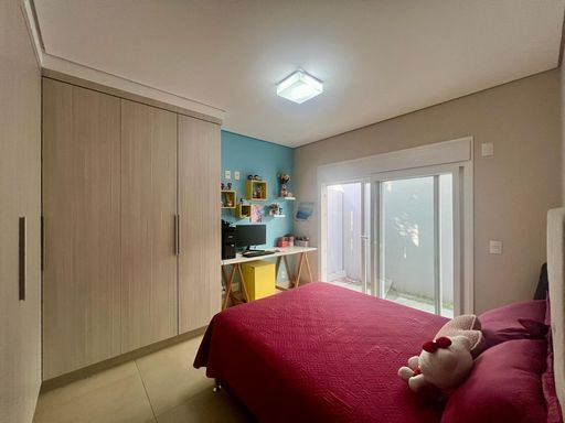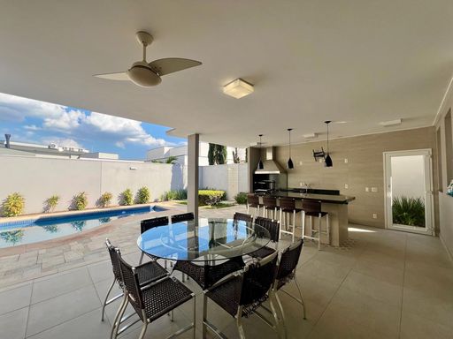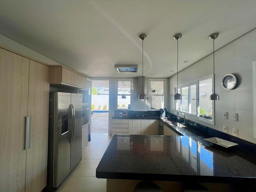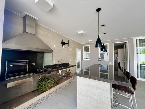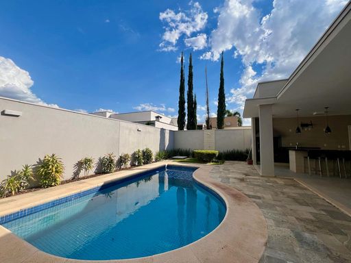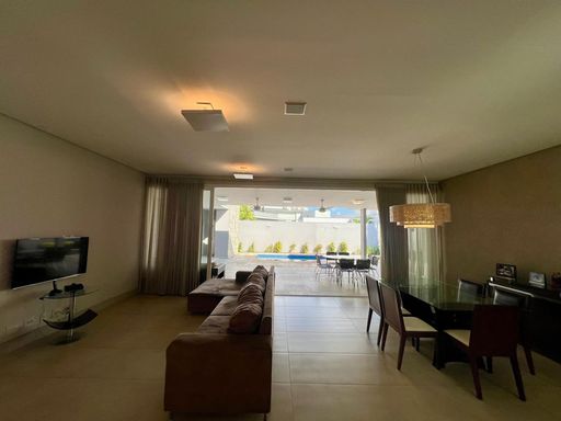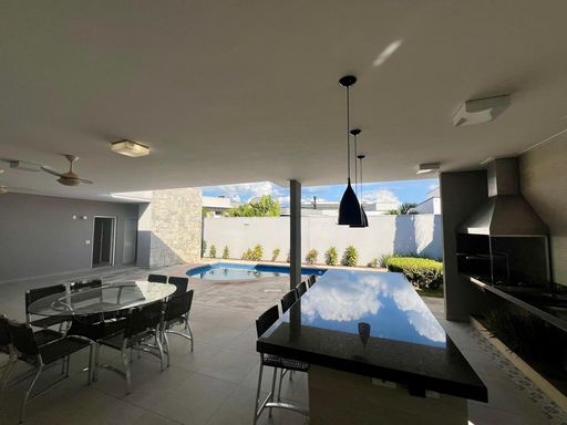 Casa térrea contendo: Sala de TV integrado com sala de jantar, cozinha, lavabo, home office, área gourmet com churrasqueira e piscina, lavanderia, W.C piscina, quarto de despejo, 03 suítes sendo 01 máster com closet e garagem para 03 veículos.
