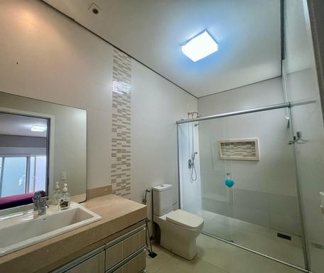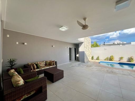 Acabamentos: Piso porcelanato Portobello área externa e interna, aquecimento solar na piscina e banheiros, portas e janelas em PVC, teto rebaixado e armários planejados.