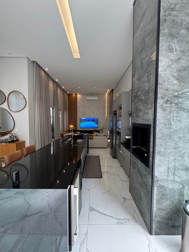 • Cozinha gourmet integrada com a sala de TV