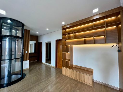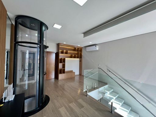 Acabamentos: Piso porcelanato nas áreas sociais e laminado nas áreas intimas, armários planejados em todos ambientes, ar-condicionado em todos ambientes, elevador que da acesso a parte superior, energia solar fotovoltaica.