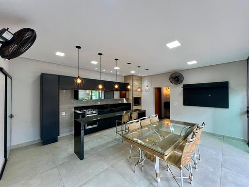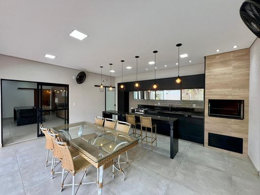 Sobrado contendo; Piso térreo> Sala de estar integrado com sala de jantar com pé direito alto, lavabo, cozinha gourmet, lavanderia, área gourmet com churrasqueira, quintal com piscina, W.C. piscina, 01 dormitórios e garagem para 02 veículos.