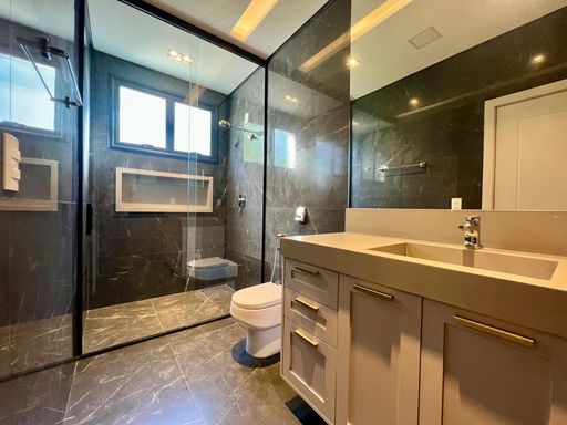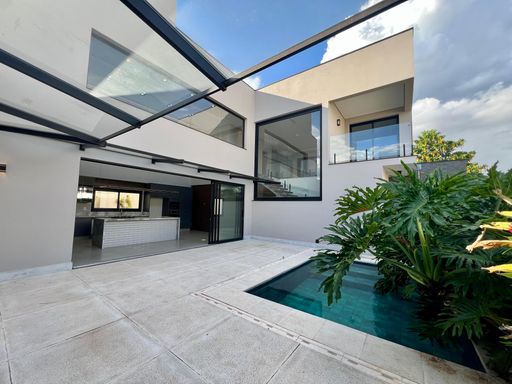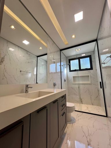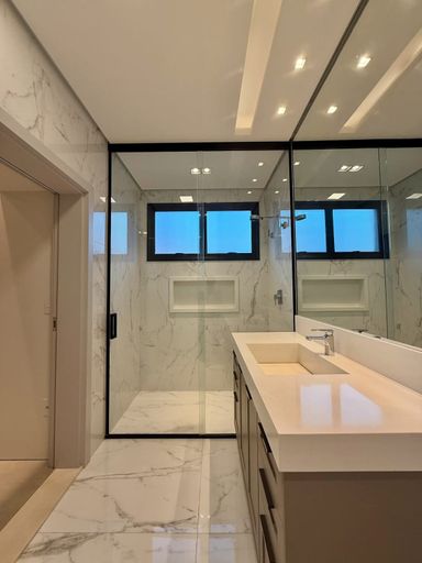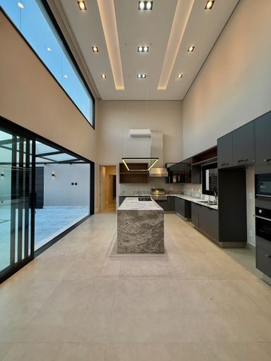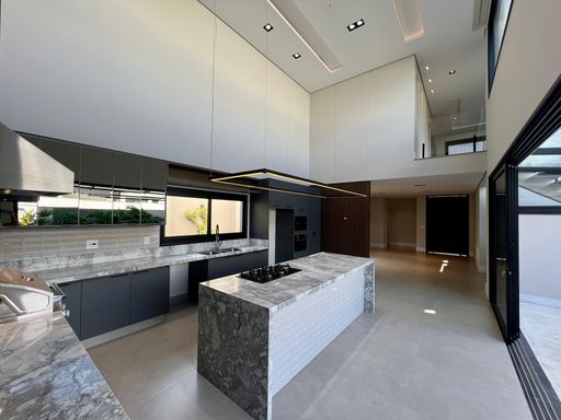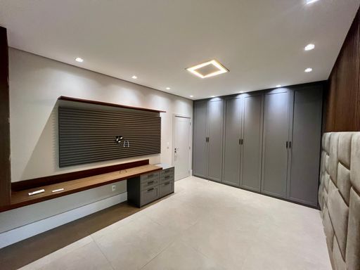 Acabamentos: Piso porcelanato na parte interna e externa, esquadrias em alumínio, teto rebaixado com gesso tabicado, piscina aquecida, moveis planejados em todos ambientes, ar-condicionado em 03 dormitórios e na cozinha, pontos para instalação em todos ambientes, energia solar fotovoltaica, cozinha contendo: Fogão cooktop, coifa, forno, micro-ondas e churrasqueira.