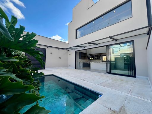Casa contendo: Piso térreo> Hall de entrada, lavabo, Sala de estar, cozinha gourmet com pé direito alto, quintal com piscina, W.C. piscina, 03 suítes sendo 02 máster com closet, lavanderia, jardim, garagem para 03 veículos.