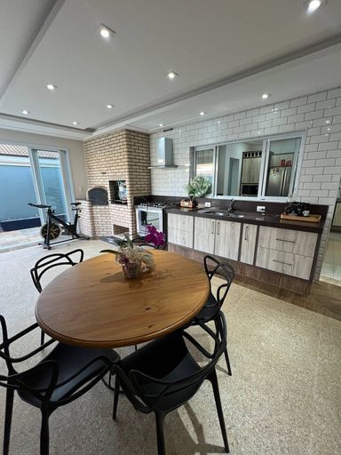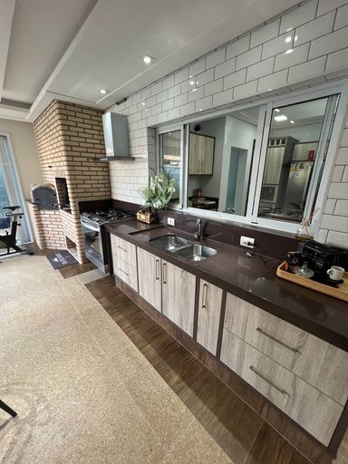 • Gourmet coberto com fogão industrial, churrasqueira e forno de pizza