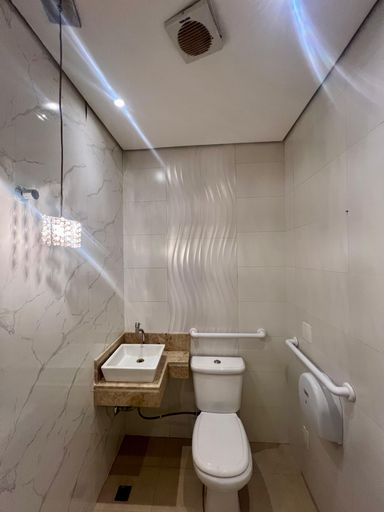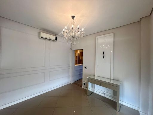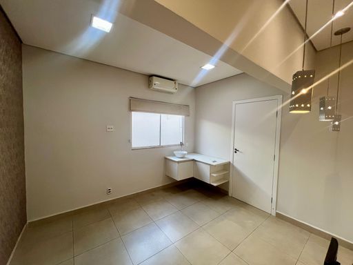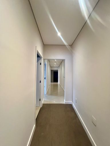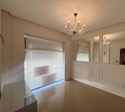 Papel de parede sofisticado em diversos ambientes, piso porcelanato, piso laminado, Sistema de monitoramento para segurança total, Teto rebaixado com iluminação LED moderna, lustre, Portas de correr otimizando espaço, Armários planejados em diversas salas, Banheiro masculino e feminino.