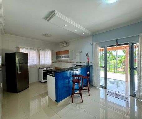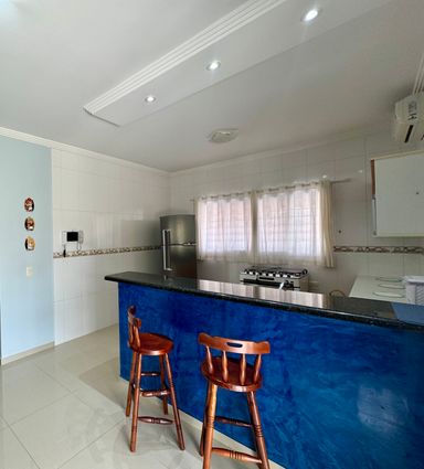 • Cozinha americana completa (geladeira, fogão, armários, cortinas e ar-condicionado)
