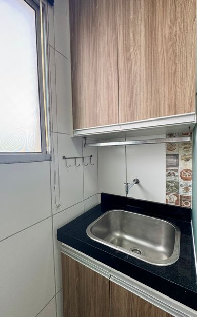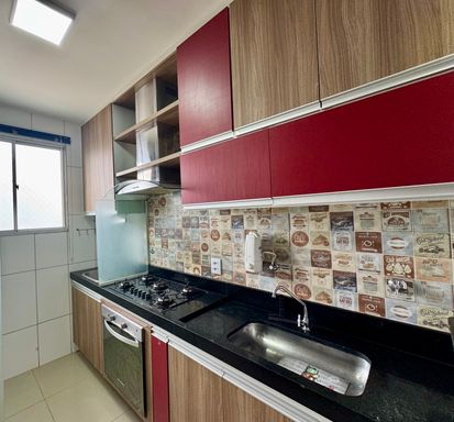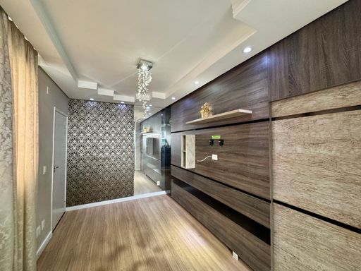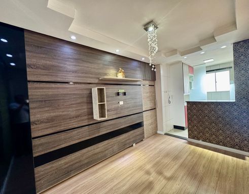 Apartamento com 47,00metros, sendo 02 dormitórios, banheiro social, sala de TV, sala de jantar, cozinha com lavanderia e garagem 01 carro.