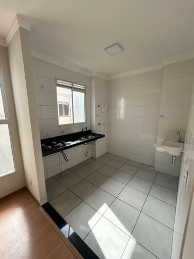 Apartamento contendo: Sala de TV integrado com sala de jantar e cozinha, lavanderia, W.C., 02 dormitórios e 01 vaga de garagem coberta.
