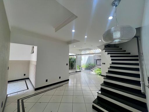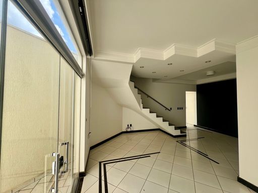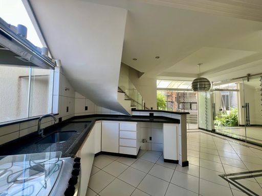 Sobrado contendo: Piso térreo> Sala de TV, sala de jantar integrada com cozinha, lavanderia, lavabo, home office, área gourmet com churrasqueira, W.C. gourmet, garagem para 05 veículos, jardim de inverno, área de lazer com W.C. feminino, W.C. masculino, piscina, churrasqueira e sauna.