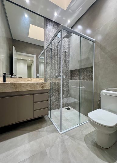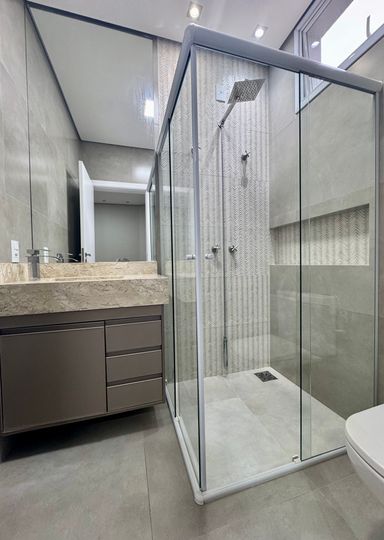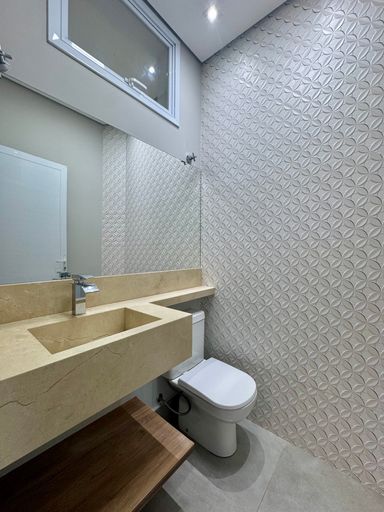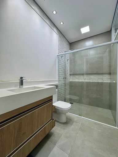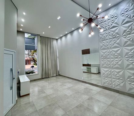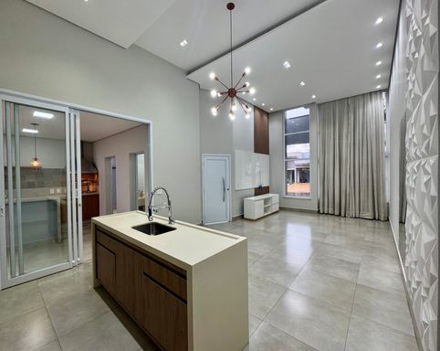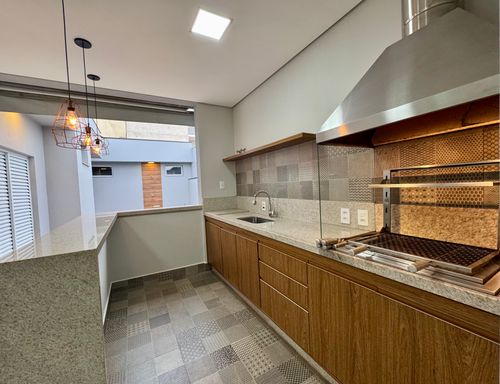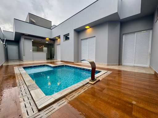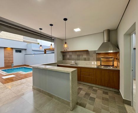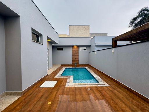 Casa Térrea contendo: 03 suítes, sendo 01 suíte máster com closet, sala de TV, sala de jantar, cozinha americana integrada, lavanderia, garagem 02 carros, espaço gourmet, churrasqueira, WC, Piscina,